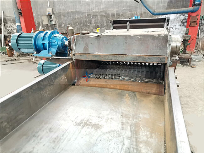 綜合破碎機采用一體化設計,采用鏈板式智能進料,可根據(jù)主電機負荷自動調(diào)節(jié)進料速度。使機器滿負荷運轉不可空載運行,使進料順暢,大幅度提高 生產(chǎn)能力。核心破碎部分采用錘式破碎原理,物料通過設備進料輸送帶送入破碎腔體,在破碎腔體內(nèi)經(jīng)過狼牙輥壓料裝置、錘片式破碎裝置實現(xiàn)木材粉碎,粉碎后的物料經(jīng)過磁力分選部分,將鐵釘?shù)冉饘俜诌x出來,不含鐵釘?shù)哪静乃樾纪ㄟ^輸送帶送出,木屑廣泛用于造紙廠、家具廠、密度板、生物質顆粒廠、機制木炭廠等。